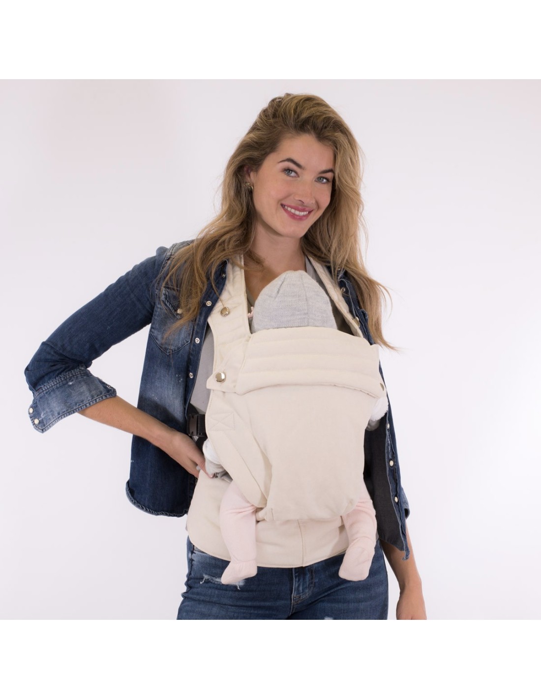 - Lassen Sie sich von der Weichheit der Materialien und der Schönheit dieser Babytrage verführen.