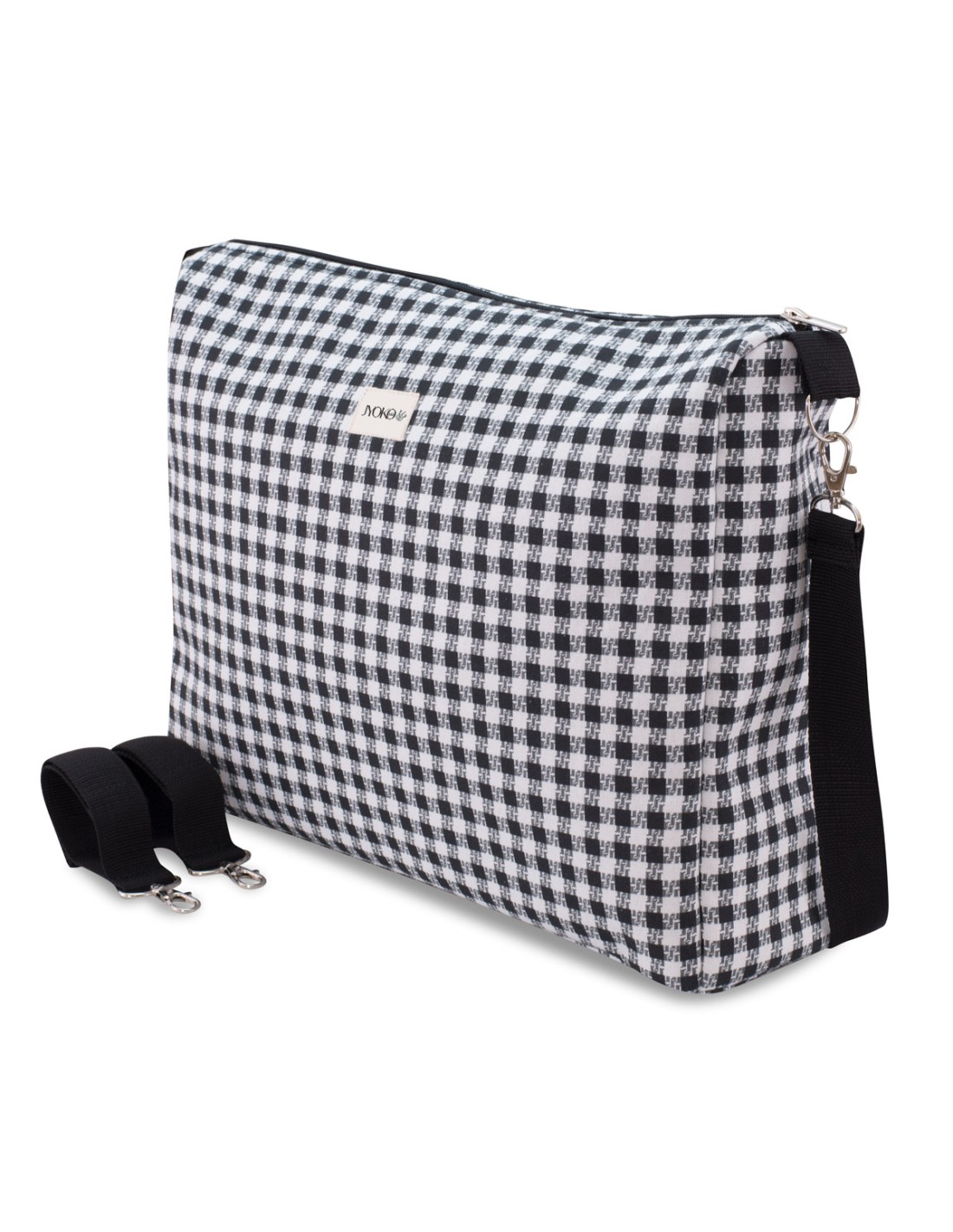 - Die Kinderwagentasche kann auf zwei verschiedene Arten verwendet werden: über die Schulter hängend, da sie über einen langen, verstellbaren Griff verfügt, mit dem sie bequem getragen werden kann, oder an der Lenkstange des Kinderwagens hängend mit ihren zwei Verankerungen. In den drei Innenfächern können Sie die wichtigsten Dinge für Ihr Baby unterbringen.