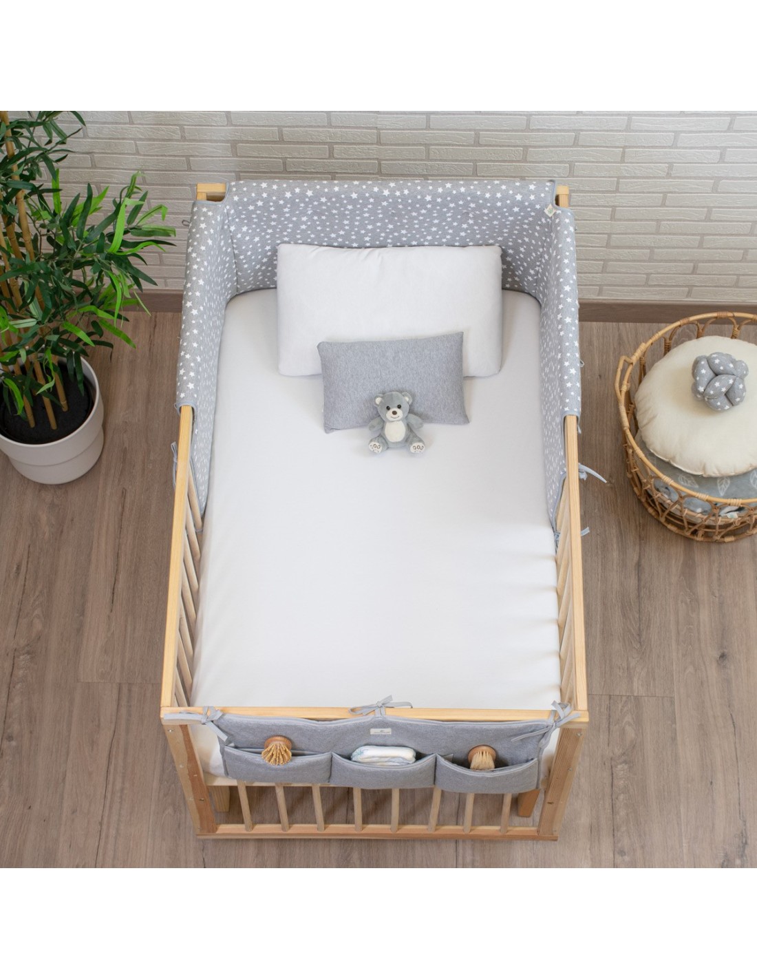 Alle Stoffe sind OEKO-TEX-zertifiziert und für Kleinkinder geeignet. Einfach zu montieren, da er mit Schlaufen versehen ist, um ihn auf praktische und sichere Weise am Kinderbett zu befestigen. Erhältlich in 2 verschiedenen Größen, abhängig von den Maßen des Kinderbettes: 60x120cm 70x140cms Mit 2 Einheiten können Sie den gesamten Umfang des Kinderbettes abdecken.