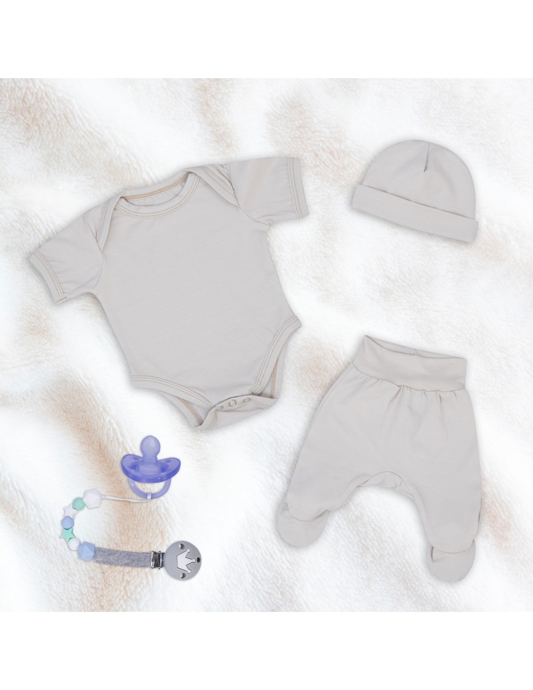 Cream First Wear Set with Pacifier Holder