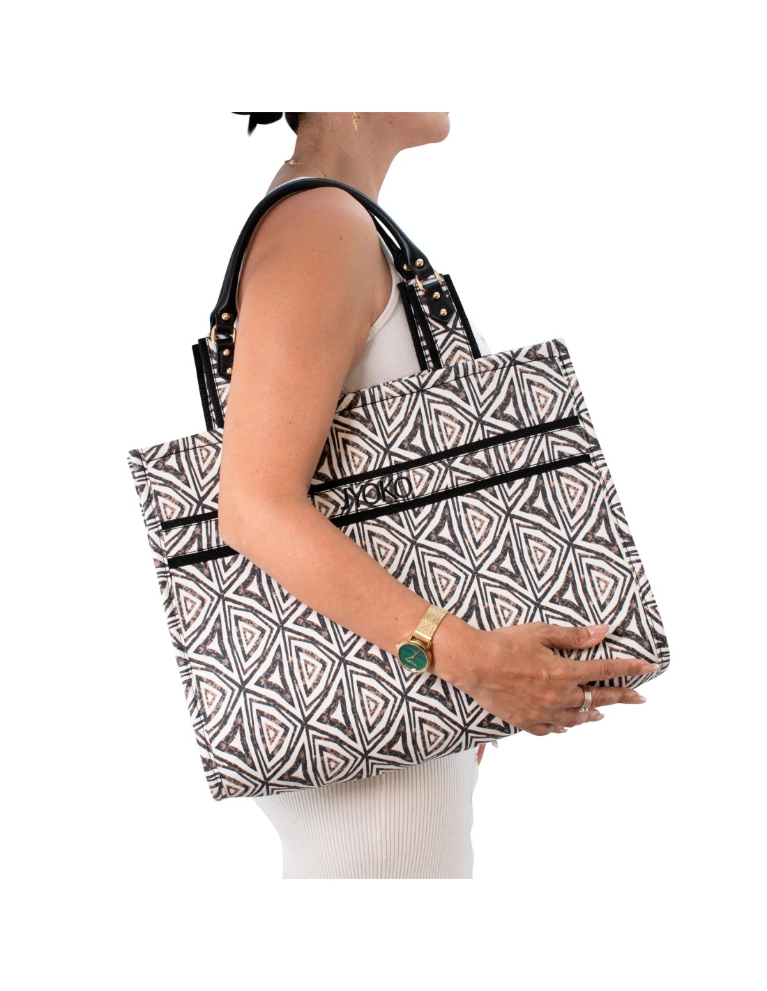 Discover the exquisite Jyoko Shopping Bag in Aztec print: a symbol of style and sophistication for the modern woman. This luxurious piece combines elegance and practicality, perfect for all occasions.