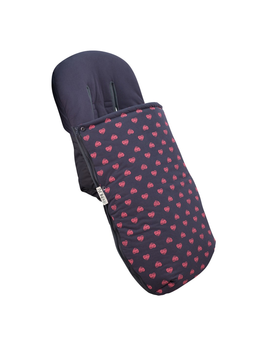- The exterior of the stroller footmuff is made of printed cotton, with a treatment that waterproofs the inside, so you have the softness of cotton on the outside with the benefits of the waterproof, also has a layer of cotton with antipeeling treatment, and a nappa padding, to ensure thermal insulation inside the bag.