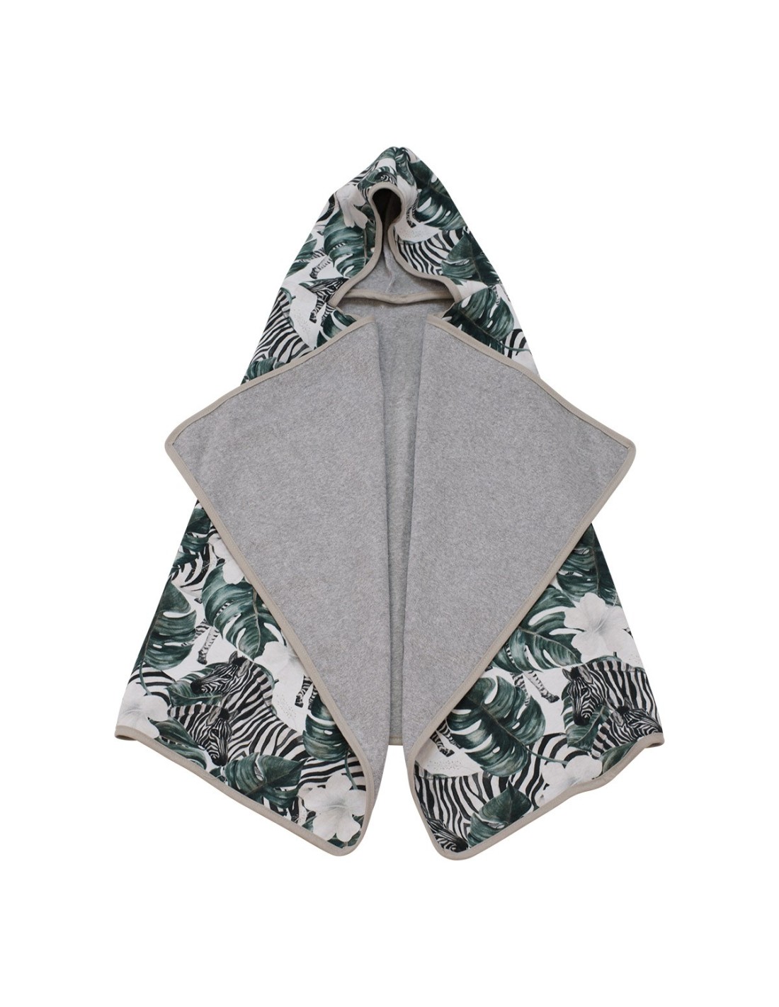 Una toalla muy completa que ha venido para quedarse. Suave, super absorbente y muy versátil, gracias a su cara de rizo de algodón orgánico antialérgico y otra capa externa de algodón estampado de punto.