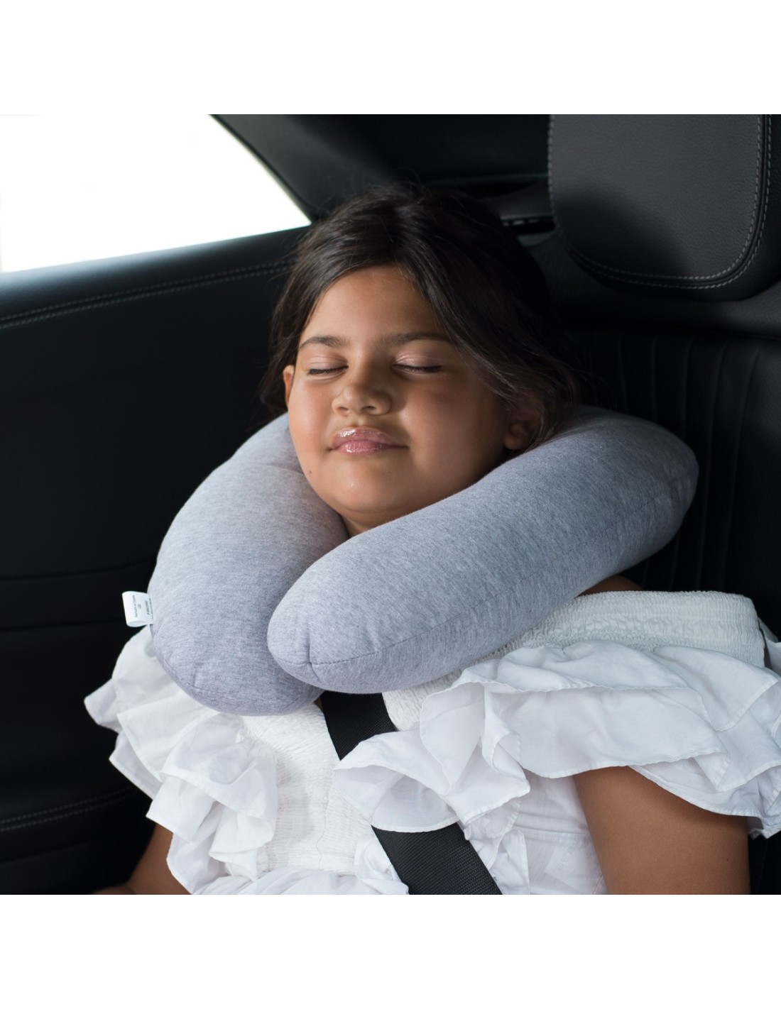 Cojín ergonómico, se moldea a la forma del cuello y hombros del peque. Exterior de algodón, muy suave al tacto.