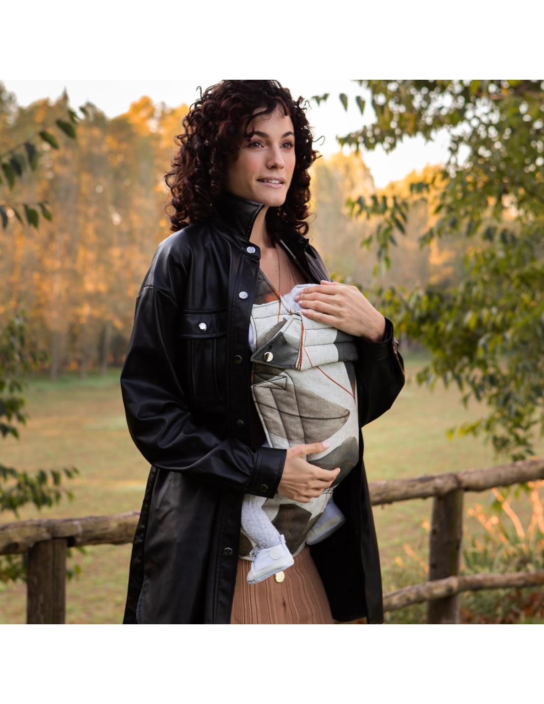Con nuestra mochila portabebés Village de Jyoko, encontrarás la mezcla perfecta de hojas y colores otoñales que se funden con la tierra.