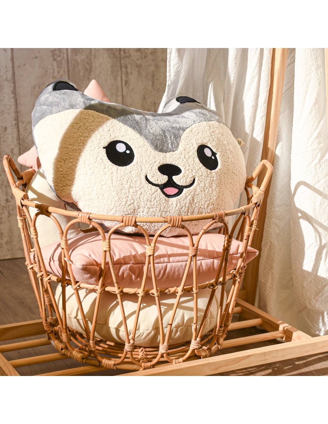 Esta almofada infantil Lobo da Jyoko é ideal para crianças de qualquer idade, pois é muito macia ao toque e tem um design muito fofo com cara de lobo.