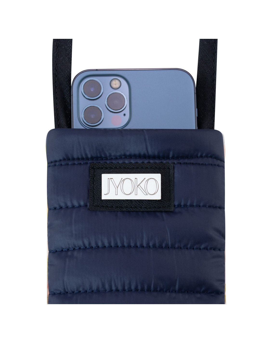 👜📱💙 Bem-vindo ao mundo da moda e da tecnologia com a bolsa acolchoada para celular com estampa Navy da Jyoko! Esta bolsa é a solução perfeita para quem procura manter o seu telefone seguro, protegido e moderno ao mesmo tempo. 💁♀️💁♂️