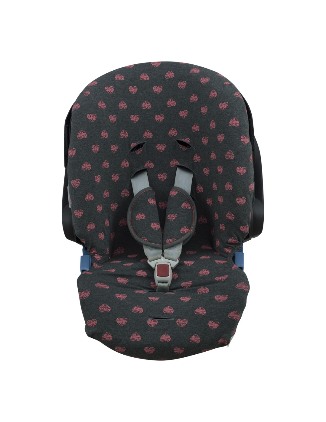 - É colocada na cadeira Cybex Aton 2 original como é padrão, sem remover a capa pré-existente do fabricante.